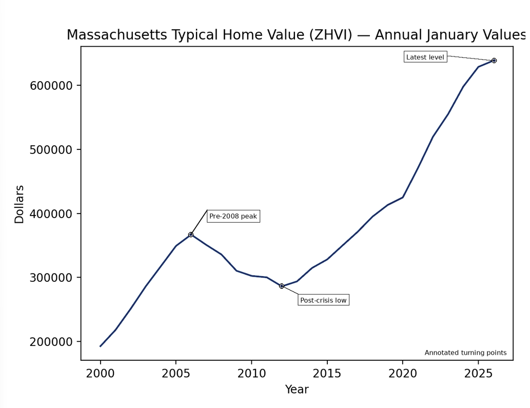 Massachusetts home values have trended upward over the long run, and as your home value grows, the remodel becomes a smaller percentage of what the property is worth over time. That appreciation can make a well-planned remodel feel more comfortable financially, but the strongest outcomes still come from aligning the kitchen’s scope and finish level with what buyers in your area typically expect.